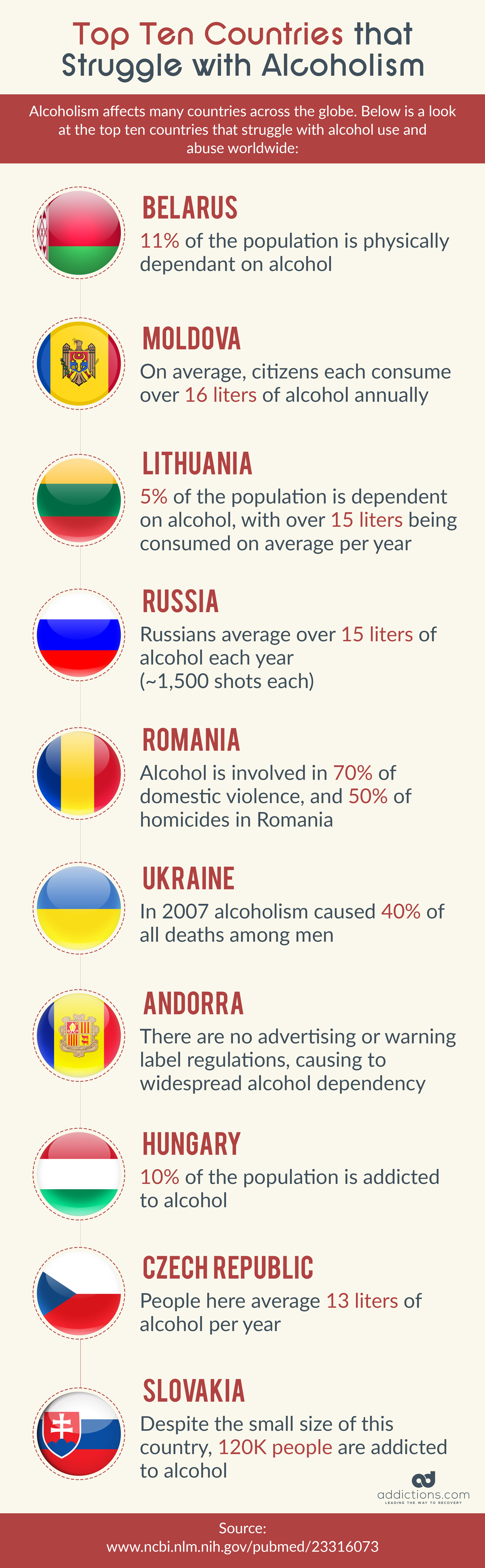 Here’s a look at the top 10 countries that struggle with alcoholism according to World Health Organization data from 2018, along with what you can do at home to prevent you and your loved ones from becoming victims of alcohol addiction.